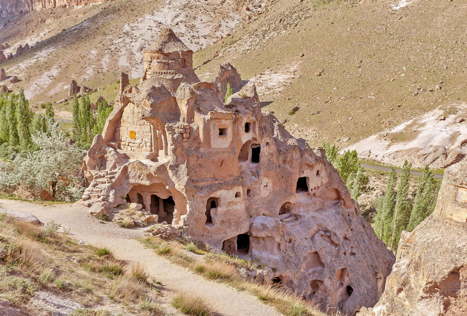 Starting from your hotel at 9:30, we drive to Mustafapasa, famous for its beautiful architecture; Mustafapasa was one of the largest Greek towns in Cappadocia until the 1924 population exchange between Turkey and Greece. The next stop is the Keslik Monastery, with one of the rare iconoclastic examples of Cappadocia frescoes. After which we will drive to the Sobessos Excavation site. Archeologists have recently (in last 10 years) begun excavations of this area. From there, we continue to Soganli Valley. Soganli was once the third largest monastic center in the area and hosts many cave churches and a beautiful hiking valley. Before start to hike in Soganli Valley we get our lunch. After our lunch and afternoon hike through the Soganli Valley we will drive to Kaymaklı Underground City.